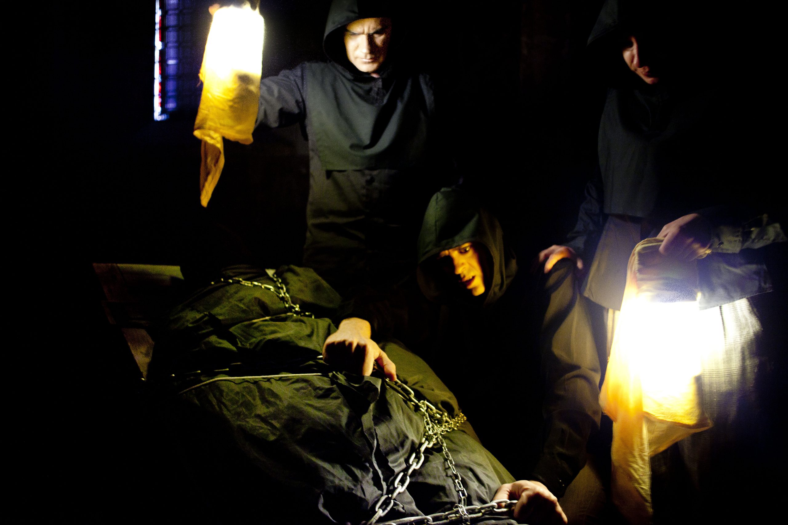 Basado en el relato de E. A. Poe “La máscara de la muerte roja” donde cuenta la historia de un príncipe que se encierra en su castillo, rodeado de sus cortesanos, intentando huir y aislarse de la peste que está asolando su país. El relato de Poe, más allá de la historia concreta, es una formidable metáfora del momento actual en el que está sumergido nuestra sociedad, un momento político, económico, social y cultural en donde nuestros gobernantes miran hacia otro lado, encaramados en sus torre de marfil, o encerrados en sus particulares castillos, haciendo oídos sordos a la desesperante situación actual, como si pudieran mantenerse al margen.